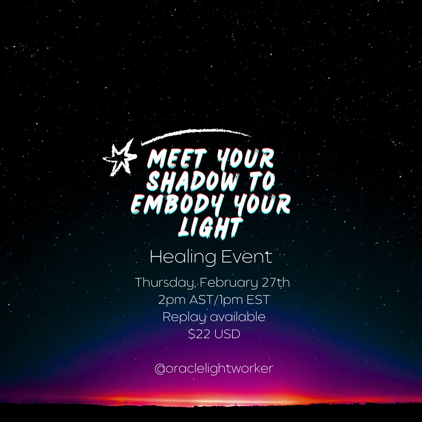 This healing event is for Lightworkers who wish to connect with their shadow aspects of self, so that they can embody more light and be of service to the collective.